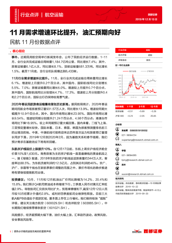 【西部证券】【20191213】民航11月份数据点评:11月需求增速环比提升,油汇预期向好-3页