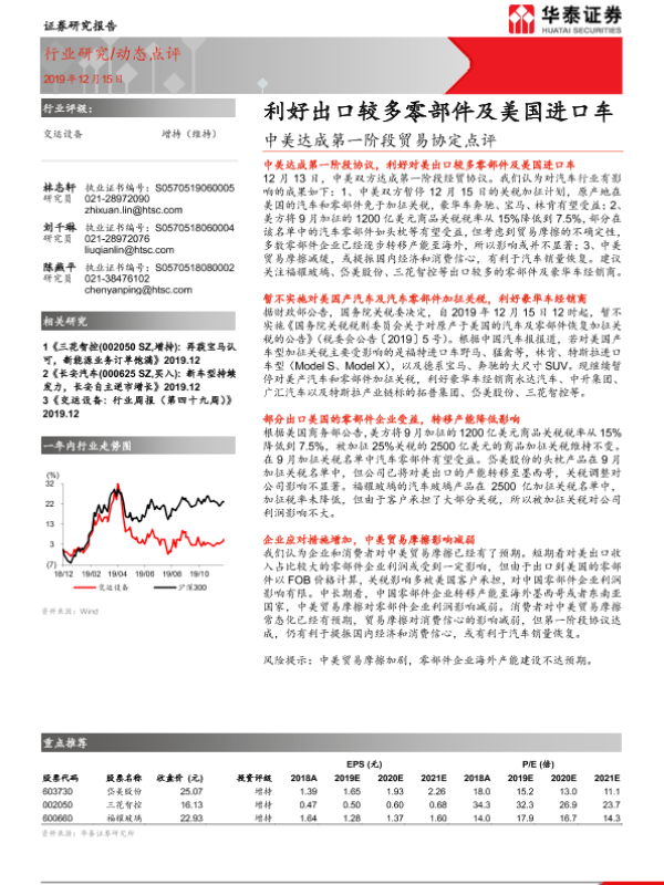 【华泰证券】【20191215】交运设备动态点评:中美达成第一阶段贸易协定点评-3页
