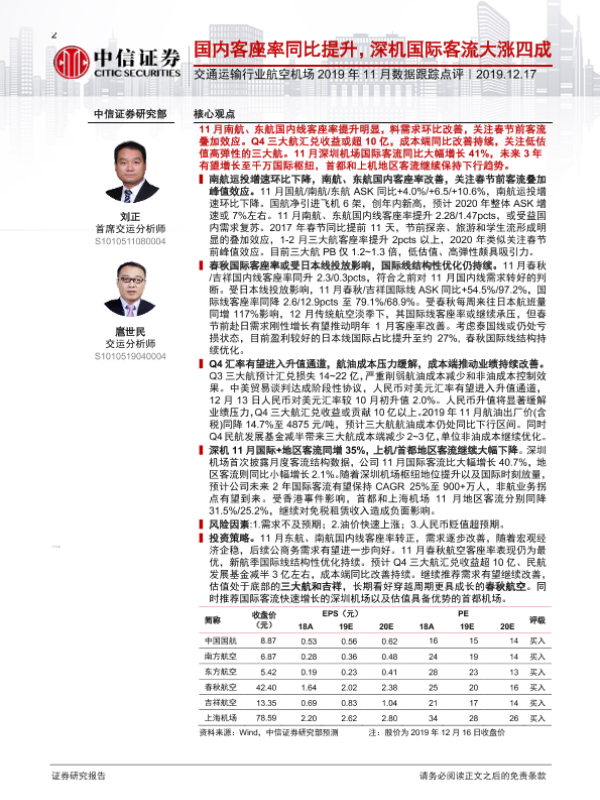 【中信证券】【20191217】交通运输行业航空机场2019年11月数据跟踪点评-9页