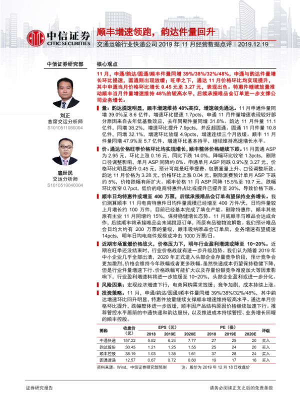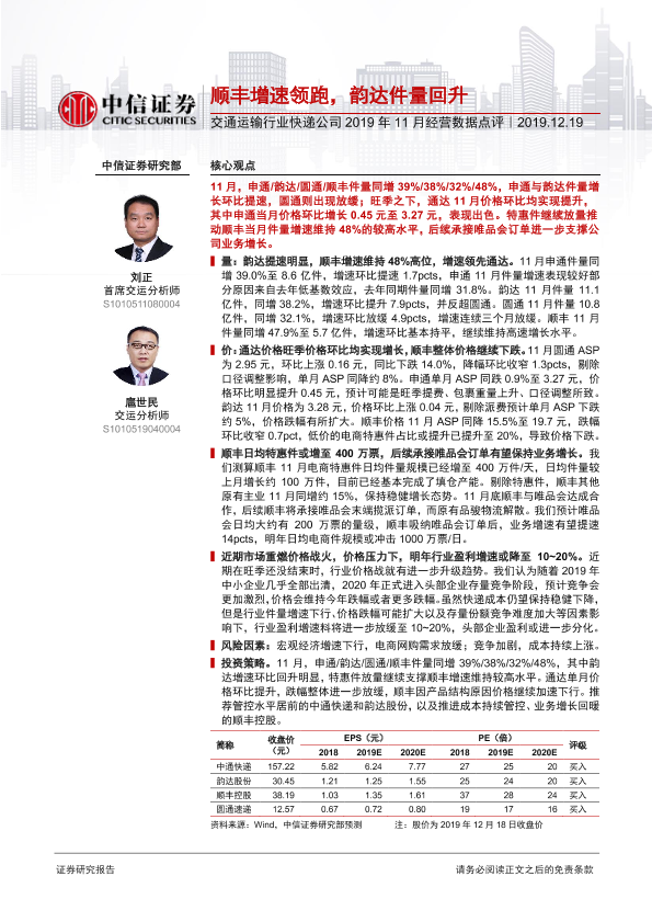 【中信证券】【20191219】交通运输行业快递公司2019年11月经营数据点评-2页
