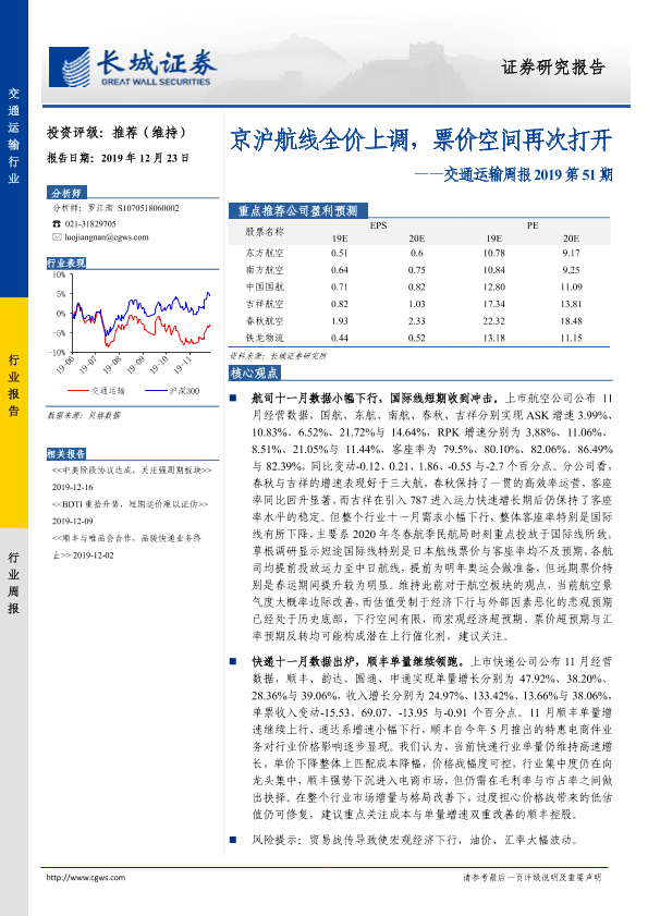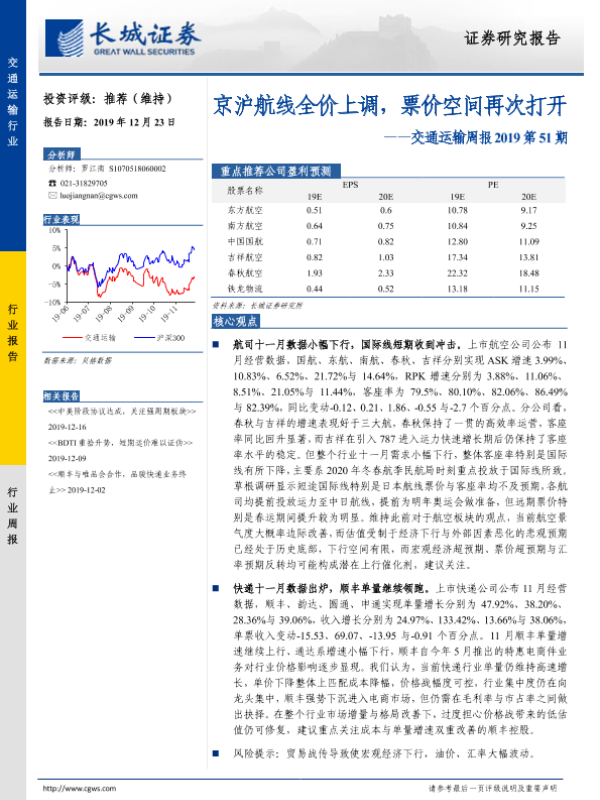 【长城证券】【20191223】京沪航线全价上调,票价空间再次打开-19页
