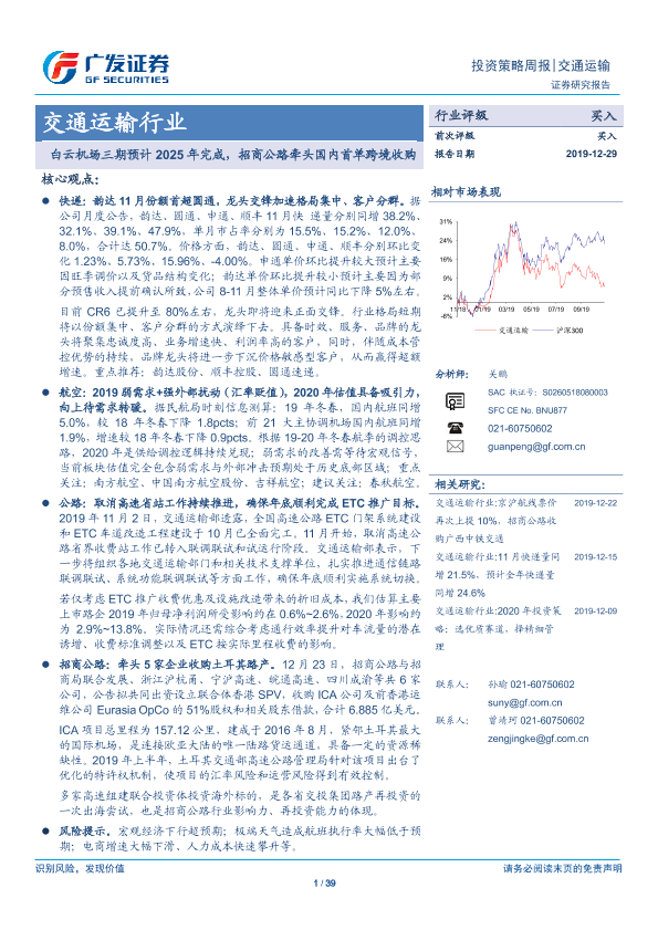 【广发证券】【20191229】交通运输行业投资策略周报:白云机场三期预计2025年完成,招商公路牵头国内首单跨境收购-39页