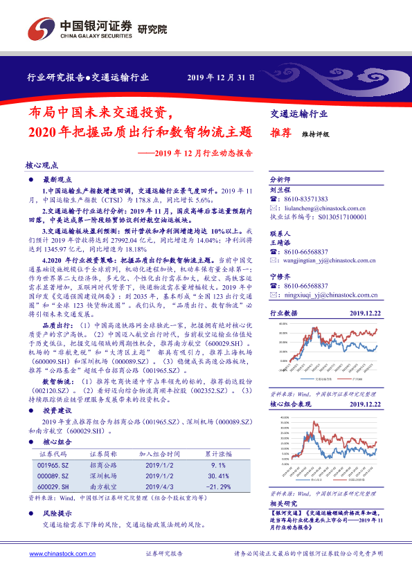 【银河证券】【20191231】交通运输行业2019年12月行业动态报告:布局中国未来交通投资,2020年把握品质出行和数智物流主题-43页