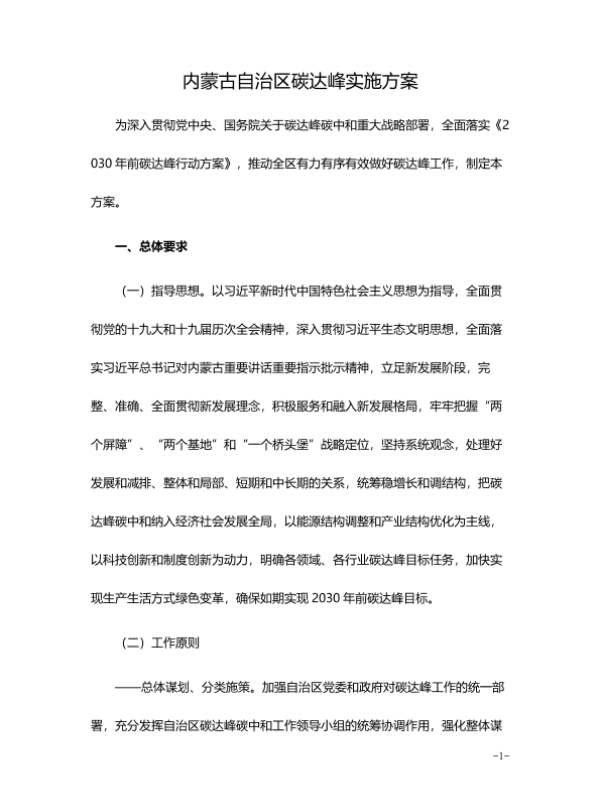 【内蒙古自治区人民政府】【20220101】内蒙古自治区碳达峰实施方案(2022年)-18页