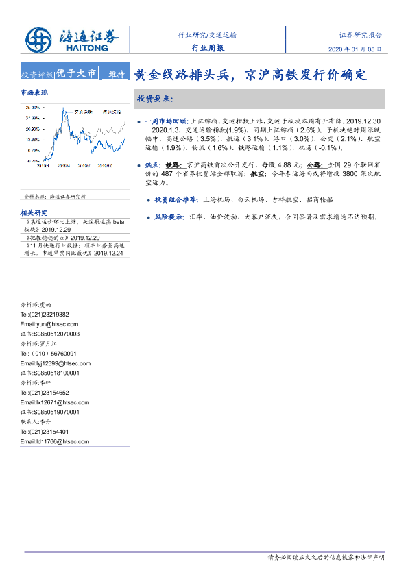交通运输 京沪高铁 发行价 行业周报 证券分析