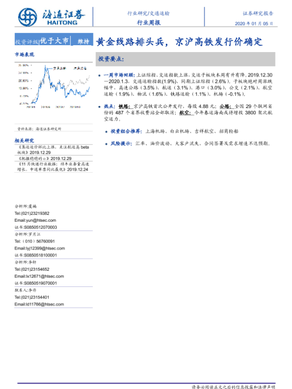 【海通证券】【20200105】黄金线路排头兵,京沪高铁发行价确定-7页