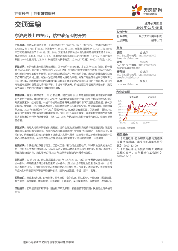 【天风证券】【20200105】交通运输行业研究周报:京沪高铁上市在即,航空春运即将开始-14页