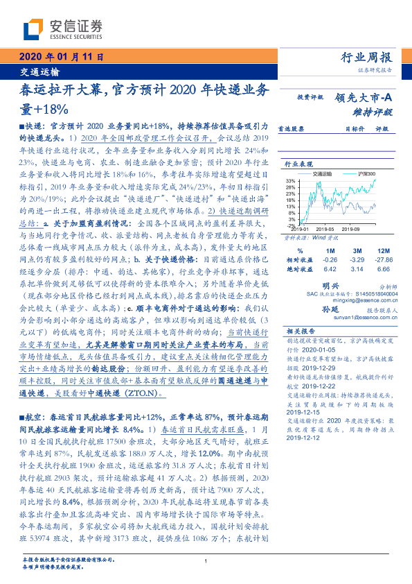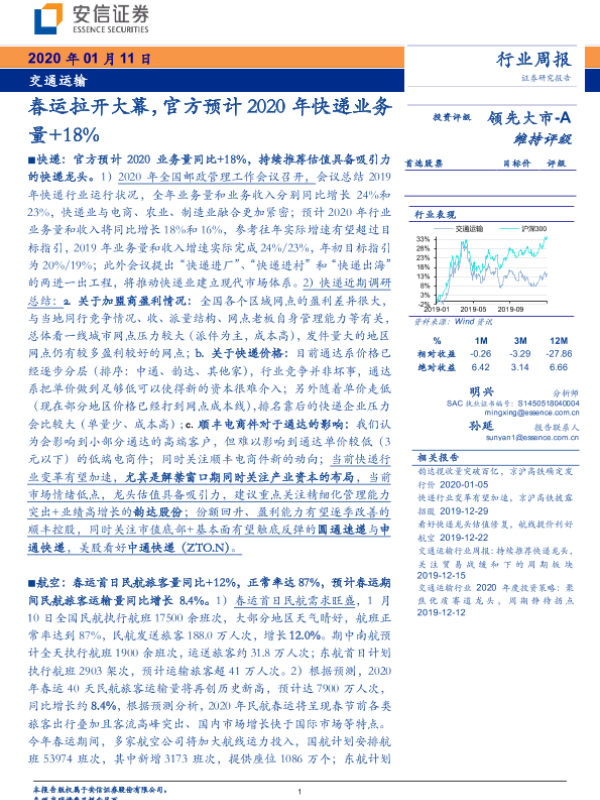 【安信证券】【20200111】交通运输行业周报:春运拉开大幕,官方预计2020年快递业务量+18%-20页