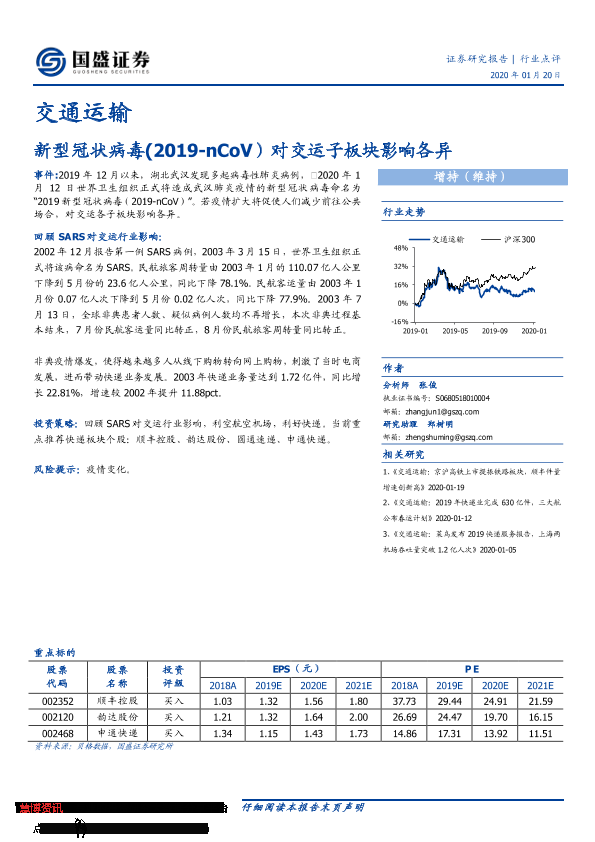 【国盛证券】【20200120】交通运输:新型冠状病毒(2019-nCoV)对交运子板块影响各异-2页