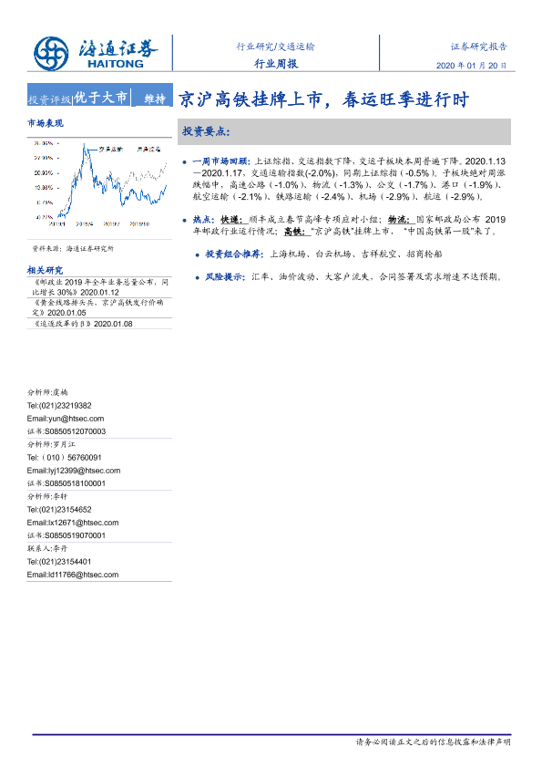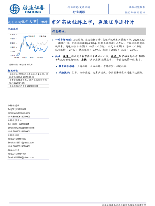 【海通证券】【20200120】交通运输行业周报:京沪高铁挂牌上市,春运旺季进行时-7页
