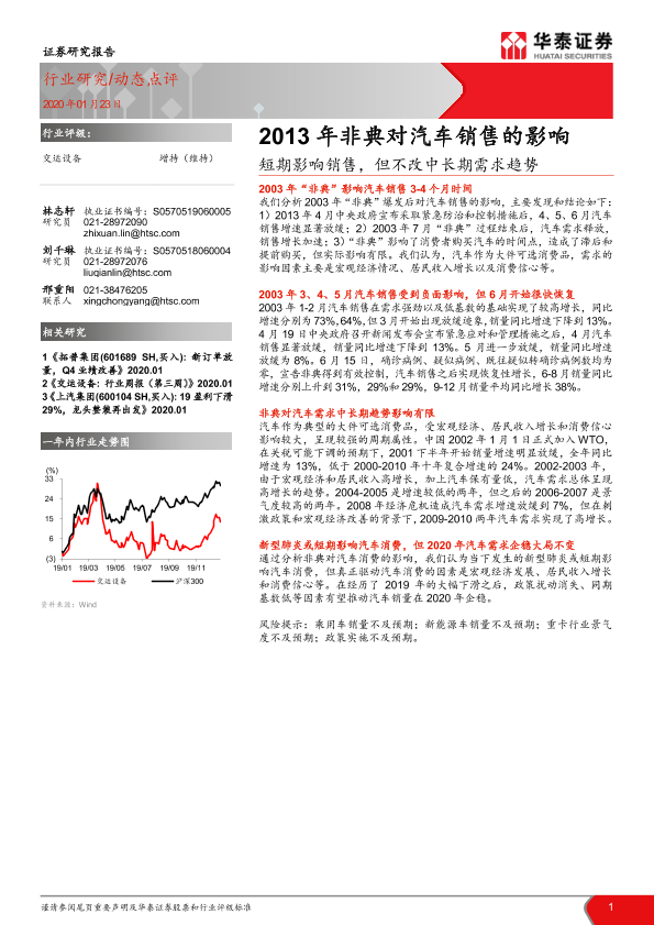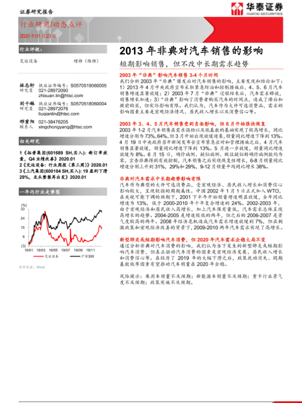 【华泰证券】【20200123】2013年非典对汽车销售的影响:短期影响销售,但不改中长期需求趋势-3页