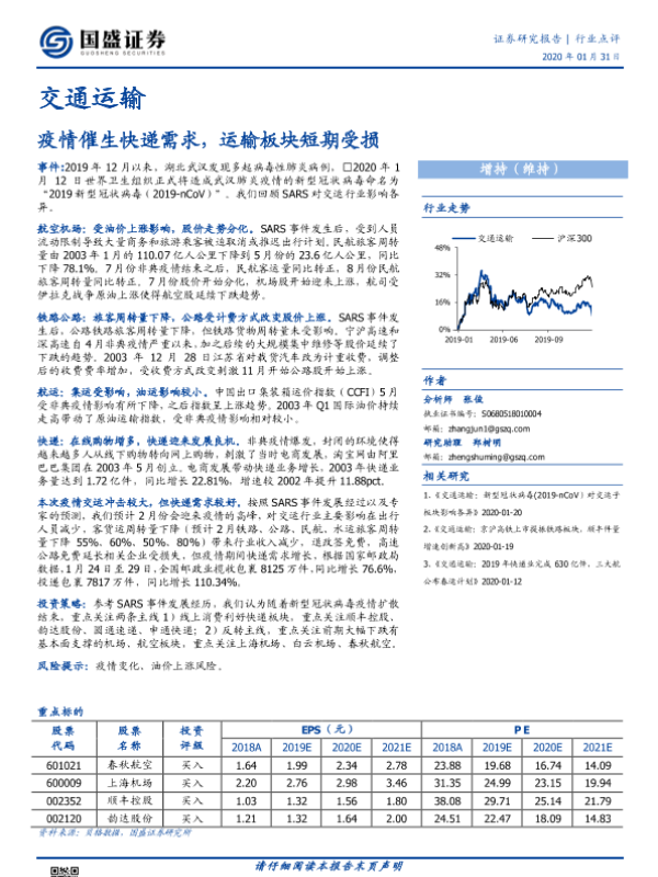 【国盛证券】【20200131】交通运输行业点评:疫情催生快递需求,运输板块短期受损-16页