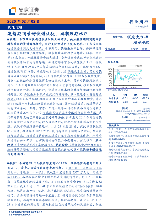 【安信证券】【20200202】疫情期间看好快递板块,周期短期承压-19页