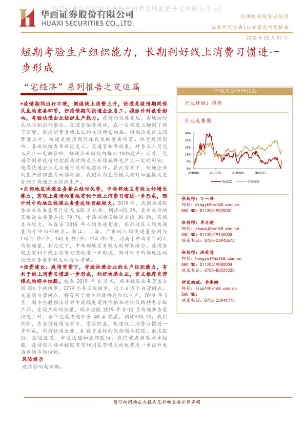 【华西证券】【20200207】“宅经济”系列报告之交运篇:短期考验生产组织能力,长期利好线上消费习惯进一步形成-13页