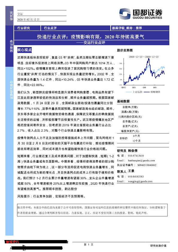 【国都证券】【20200212】快递行业点评:疫情影响有限,2020年持续高景气-2页