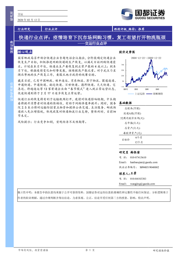 【国都证券】【20200212】交运行业点评:快递行业点评:疫情培育下沉市场网购习惯,复工有望打开物流瓶颈-2页