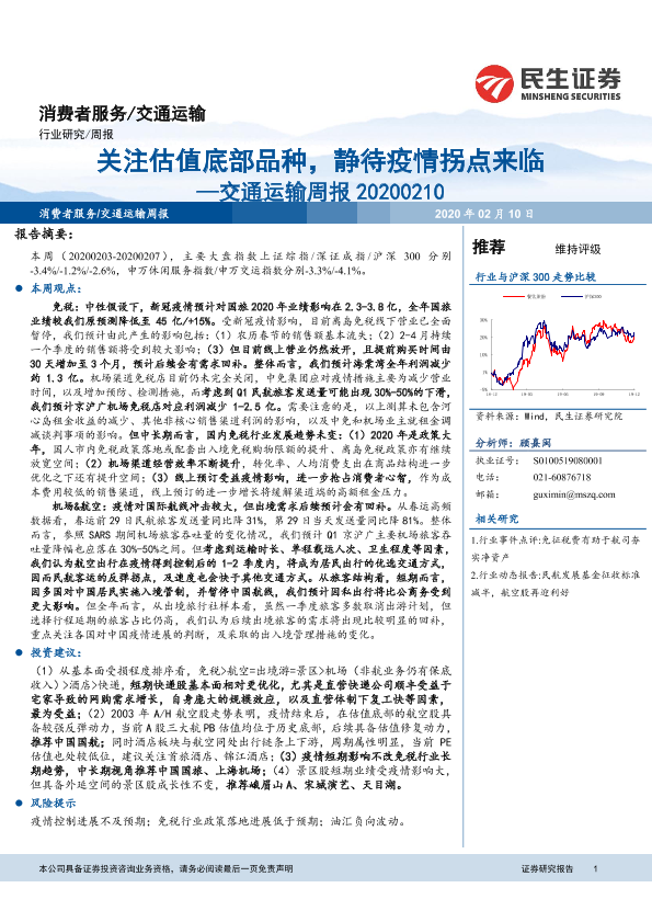 【民生证券】【20200210】交通运输行业周报:关注估值底部品种,静待疫情拐点来临-13页