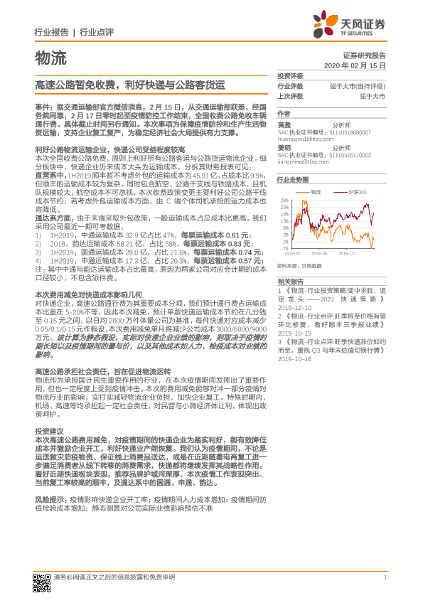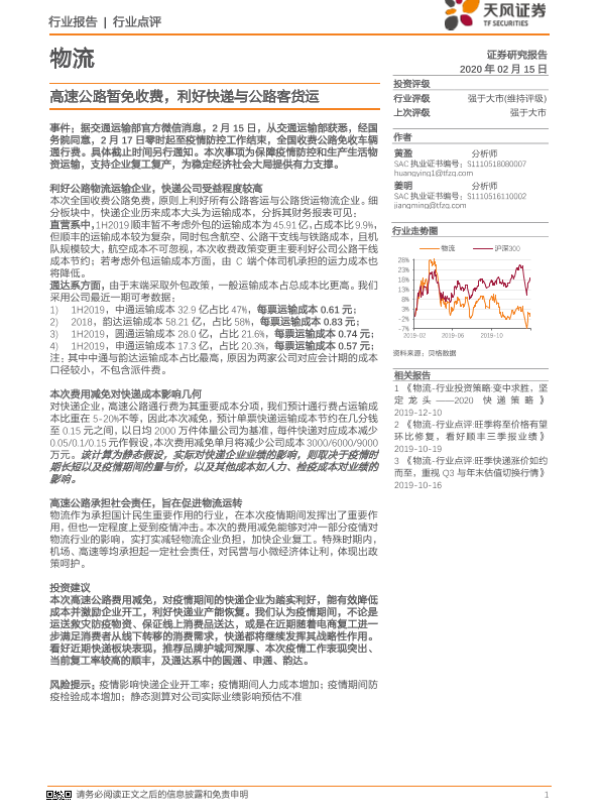 【天风证券】【20200215】高速公路暂免收费,利好快递与公路客货运-2页