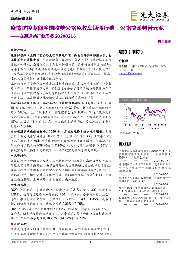 【光大证券】【20200216】疫情防控期间全国收费公路免收车辆通行费,公路快递判若云泥-7页