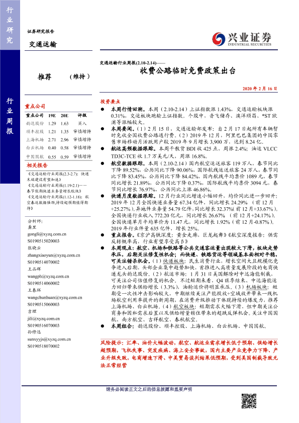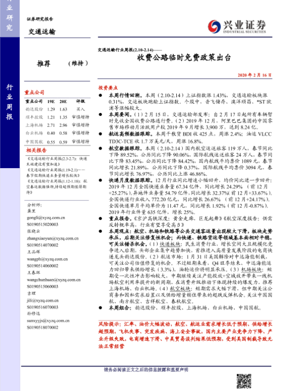 【兴业证券】【20200216】交通运输行业周报——收费公路临时免费政策出台-16页
