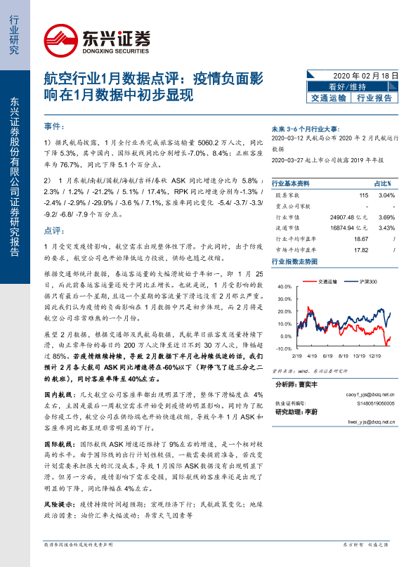【东兴证券】【20200218】航空行业1月数据点评:疫情负面影响在1月数据中初步显现-10页