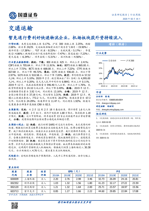 【国盛证券】【20200216】暂免通行费利好快递物流企业,机场板块获外资持续流入-20页