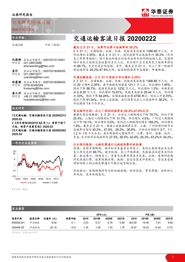 【华泰证券】【20200222】交通运输客流日报-5页