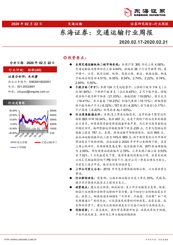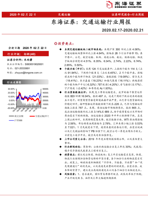 交通运输 物流快递 疫情影响 股市分析 行业周报