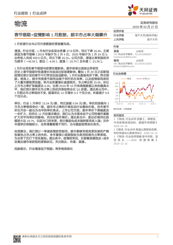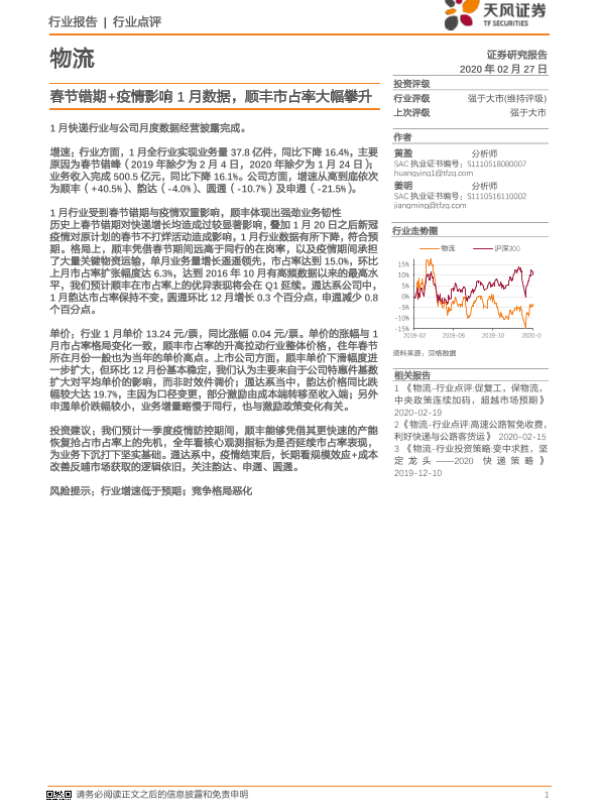 【天风证券】【20200227】春节错期+疫情影响1月数据,顺丰市占率大幅攀升-7页