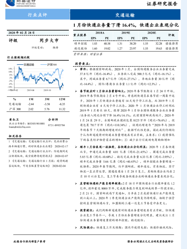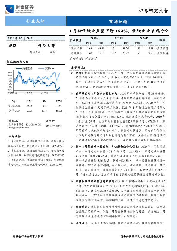 【财信证券】【20200228】1月份快递业务量下滑16.4%,快递企业表现分化-2页