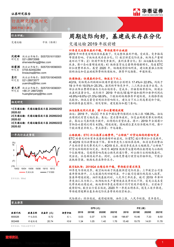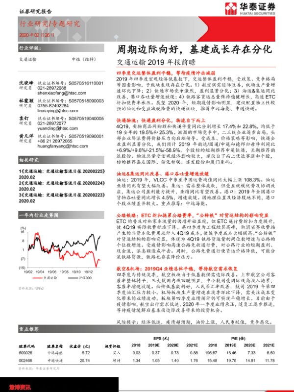 【华泰证券】【20200226】交通运输2019年报前瞻:周期边际向好,基建成长存在分化-24页