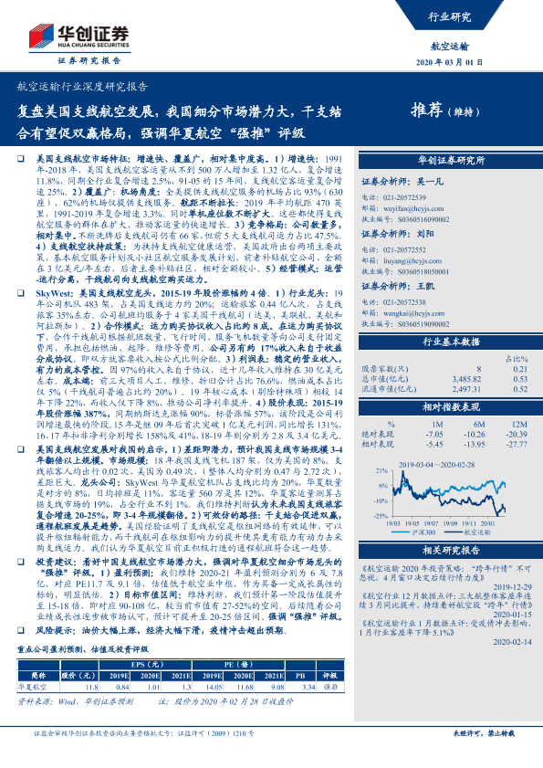 【华创证券】【20200301】航空运输行业深度研究报告:复盘美国支线航空发展,我国细分市场潜力大,干支结合有望促双赢格局-31页