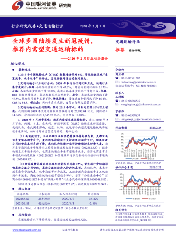 交通运输 内需型标的 新冠疫情 物流快递 行业动态