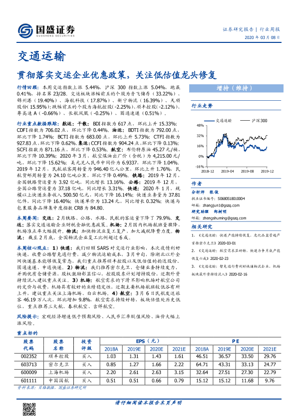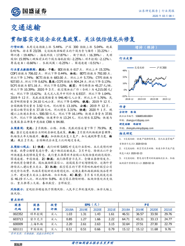 【国盛证券】【20200308】交通运输:贯彻落实交运企业优惠政策,关注低估值龙头修复-20页