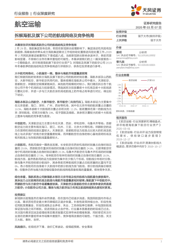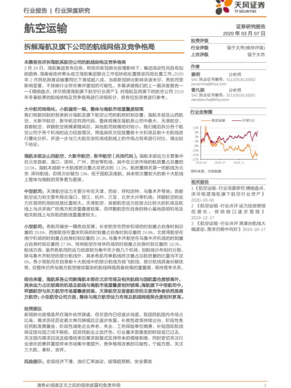【天风证券】【20200307】拆解海航及旗下公司的航线网络及竞争格局-23页