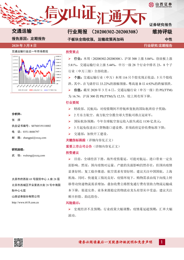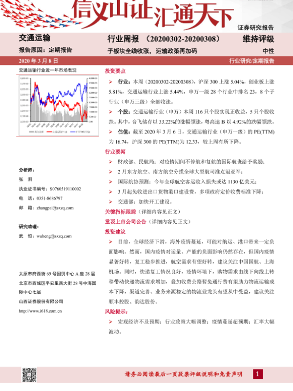 【山西证券】【20200308】交通运输行业周报:子板块全线收涨,运输政策再加码-15页