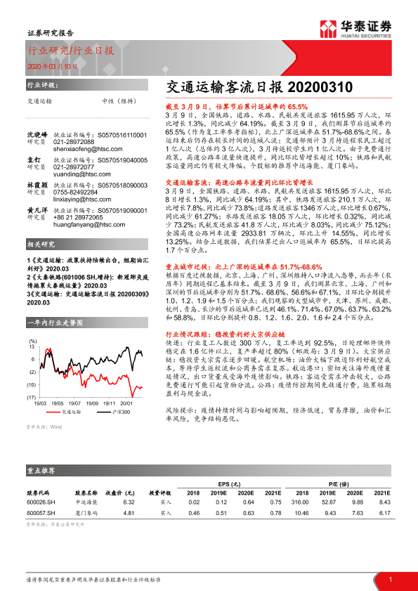 【华泰证券】【20200310】交通运输客流日报-5页