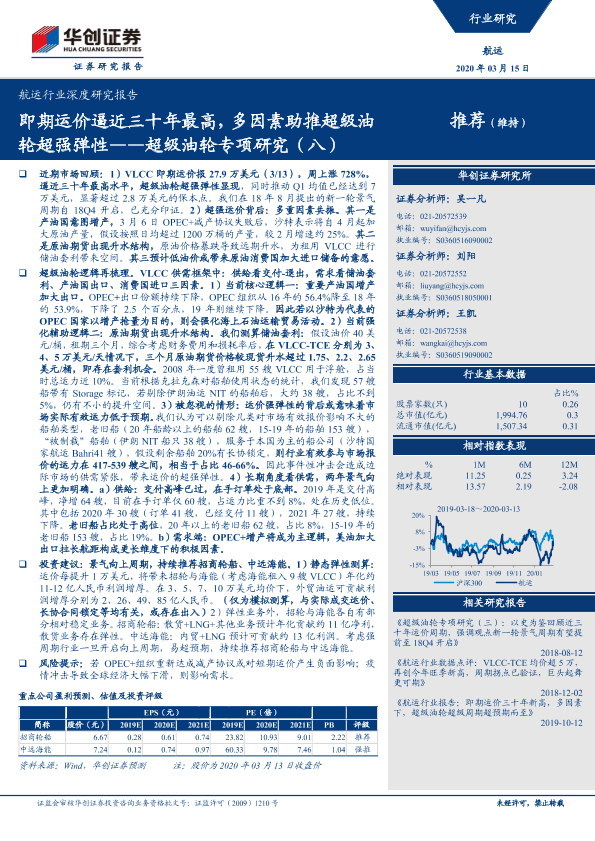 【华创证券】【20200315】超级油轮专项研究(八):即期运价逼近三十年最高,多因素助推超级油轮超强弹性-18页