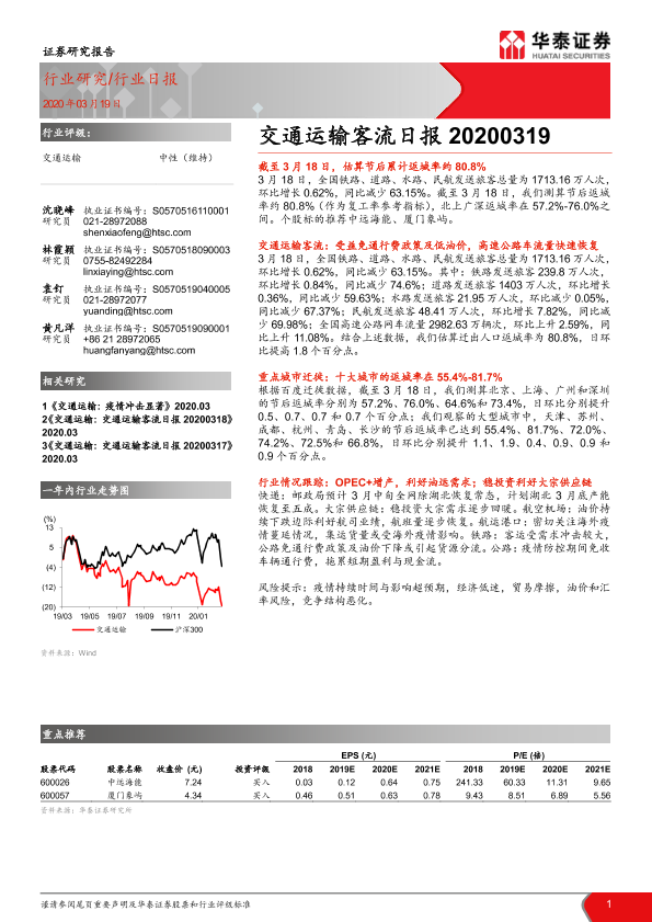 华泰证券 交通运输仓储邮政 2020年 PDF 289.32 KB