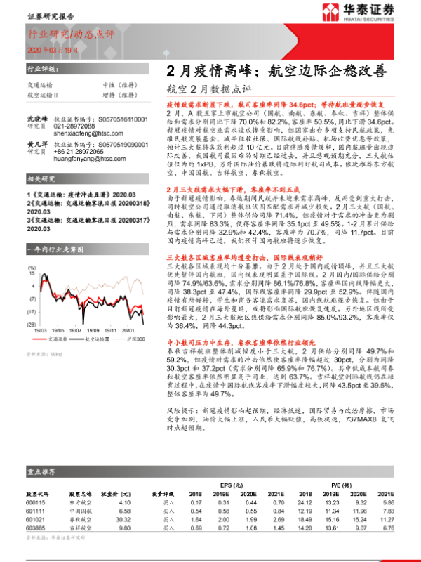 【华泰证券】【20200319】2月疫情高峰;航空边际企稳改善-4页