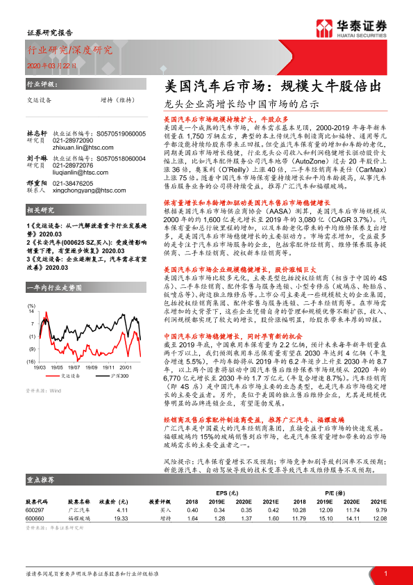 【华泰证券】【20200322】交运设备:龙头企业高增长给中国市场的启示:美国汽车后市场-56页