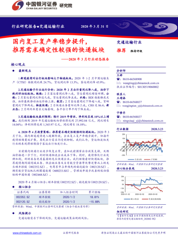 交通运输 复工复产 快递板块 新冠疫情 物流