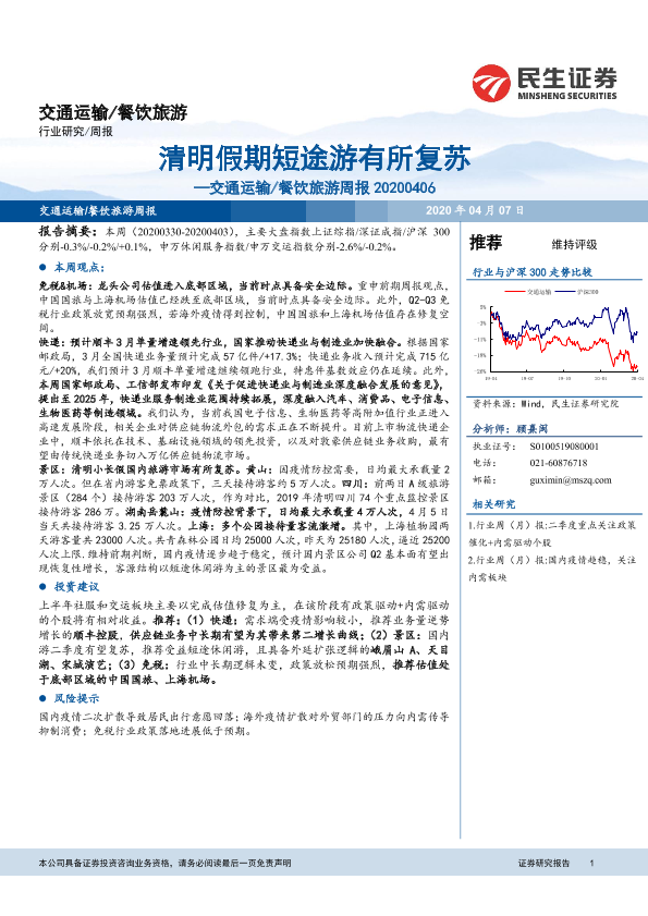 【民生证券】【20200406】清明假期短途游有所复苏-13页