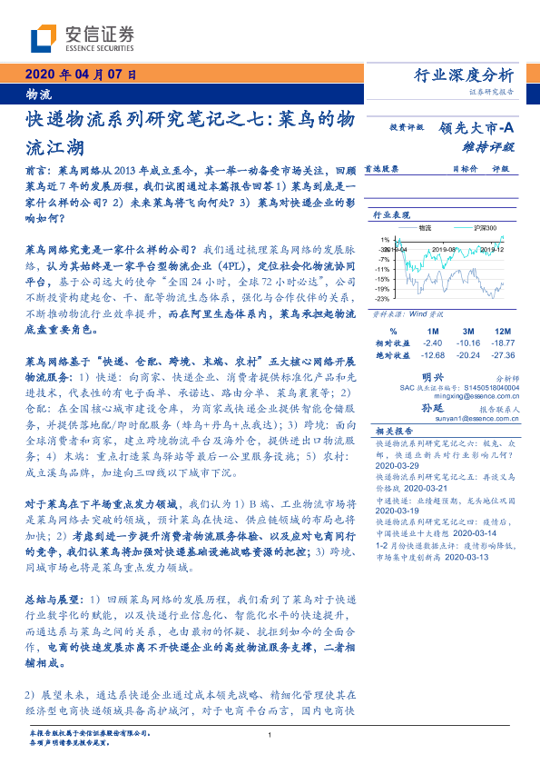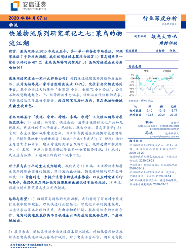【安信证券】【20200407】快递物流系列研究笔记之七:菜鸟的物流江湖-23页