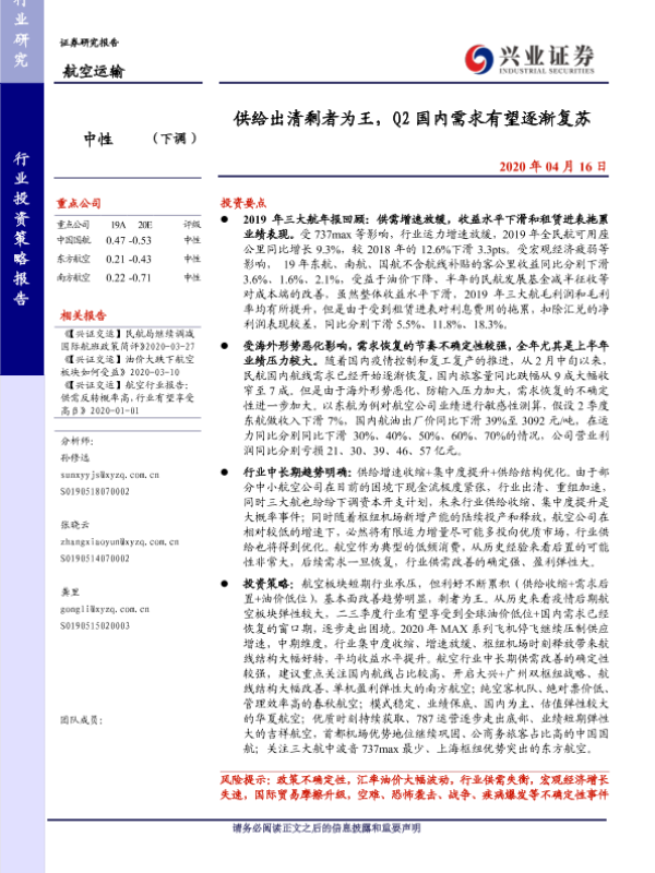 供需分析 投资策略 疫情影响 航空运输 财务表现