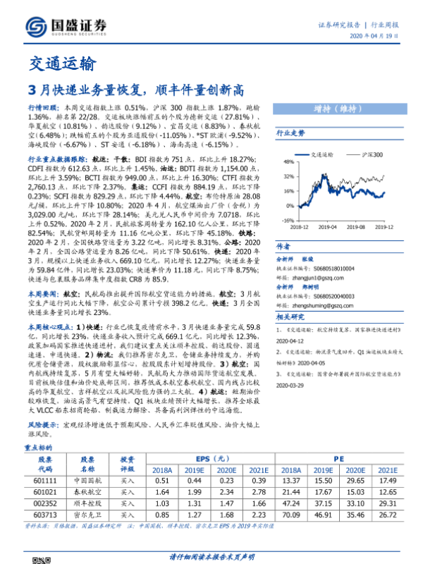 交通运输 市场动态 行业周报 顺丰控股 快递业务