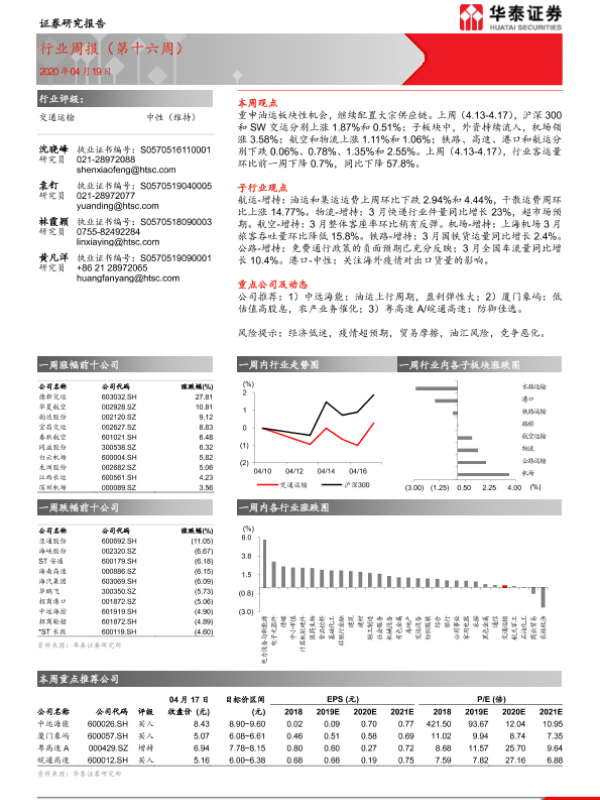 【华泰证券】【20200419】交通运输行业周报(第十六周)-10页