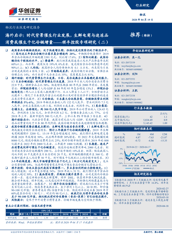 【华创证券】【20200419】物流行业深度研究报告:顺丰控股专项研究(二)-海外启示:时代背景催生行业发展,生鲜电商与速冻品消费或催生千亿冷链增量-33页