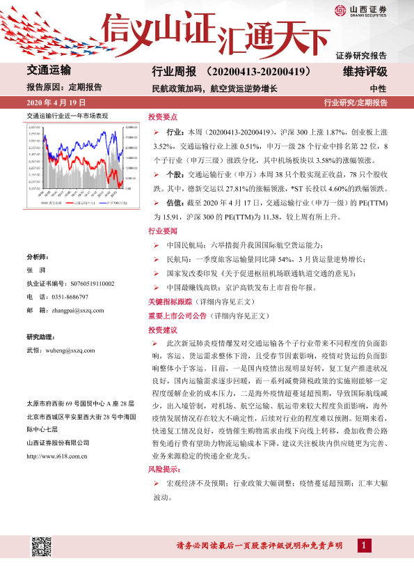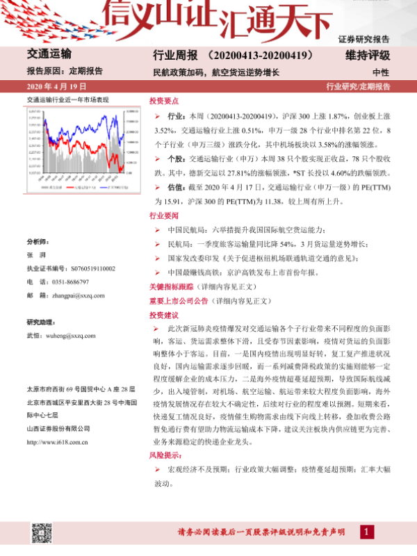 【山西证券】【20200419】交通运输行业周报:民航政策加码,航空货运逆势增长-15页