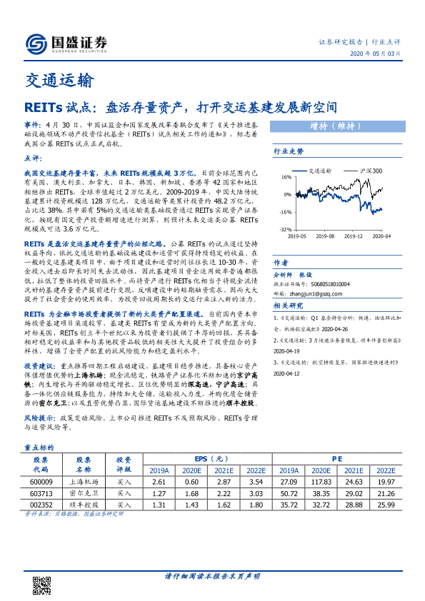 【国盛证券】【20200503】REITs试点:盘活存量资产,打开交运基建发展新空间-7页